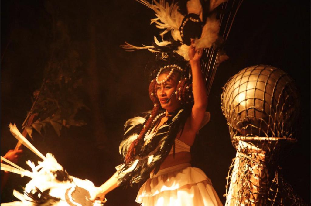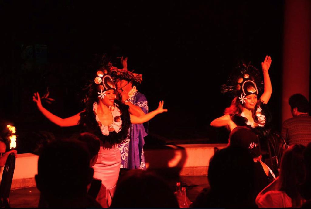 島嶼主題晚宴秀表演,包括火舞演員,戰士聖歌,優雅的女性表演,現場演唱和現場樂隊表演.