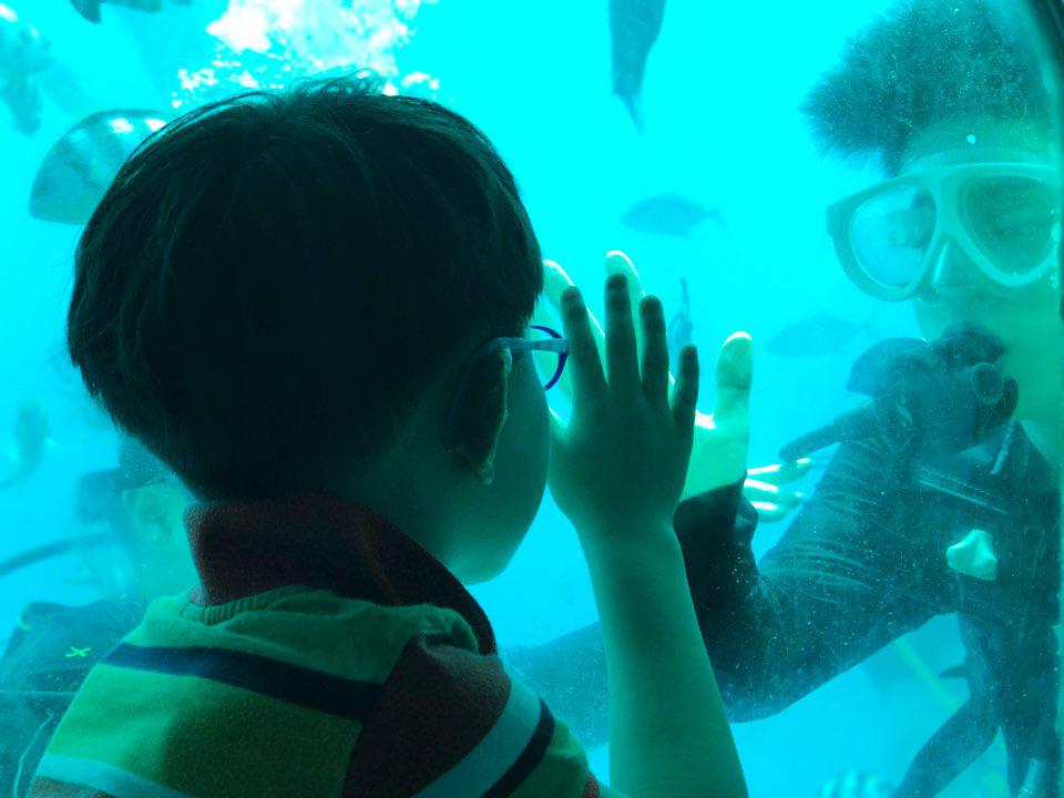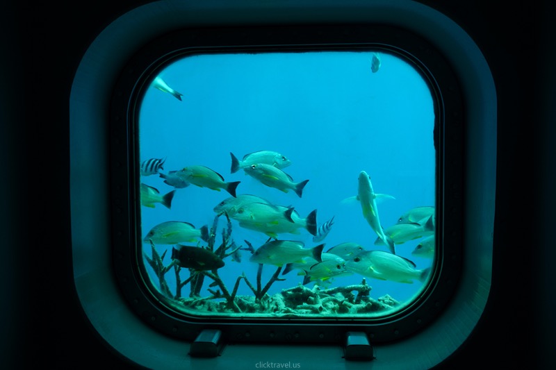 다이버들이 200여종이 넘는 다양한 열대어들을 유인하는 모습과 산호정원을 24개의 창으로 보시는 것입니다.