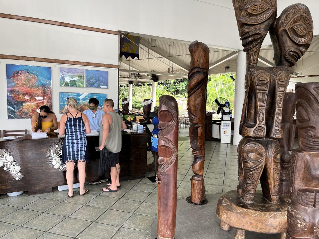 열대 분위기의 레스토랑에서 코코넛 과즙 및 코코넛을 시식할 수가 있습니다.